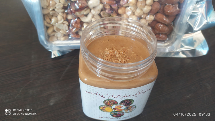 کره کنجد تهیه شده از کتجد درجه یک دو تفت که طعم مطبوعی به این کرده داده، وبسیار غلیط و باصرفه است.