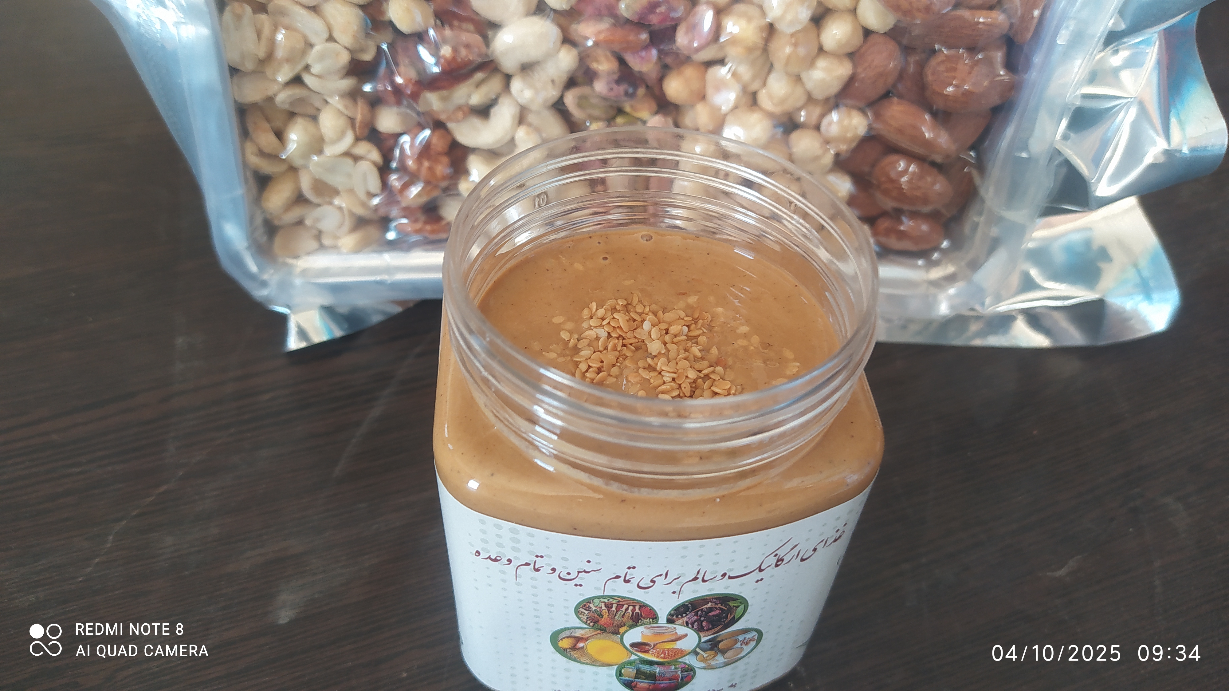 کره کنجد تهیه شده از کتجد درجه یک دو تفت که طعم مطبوعی به این کرده داده، وبسیار غلیط و باصرفه است.
